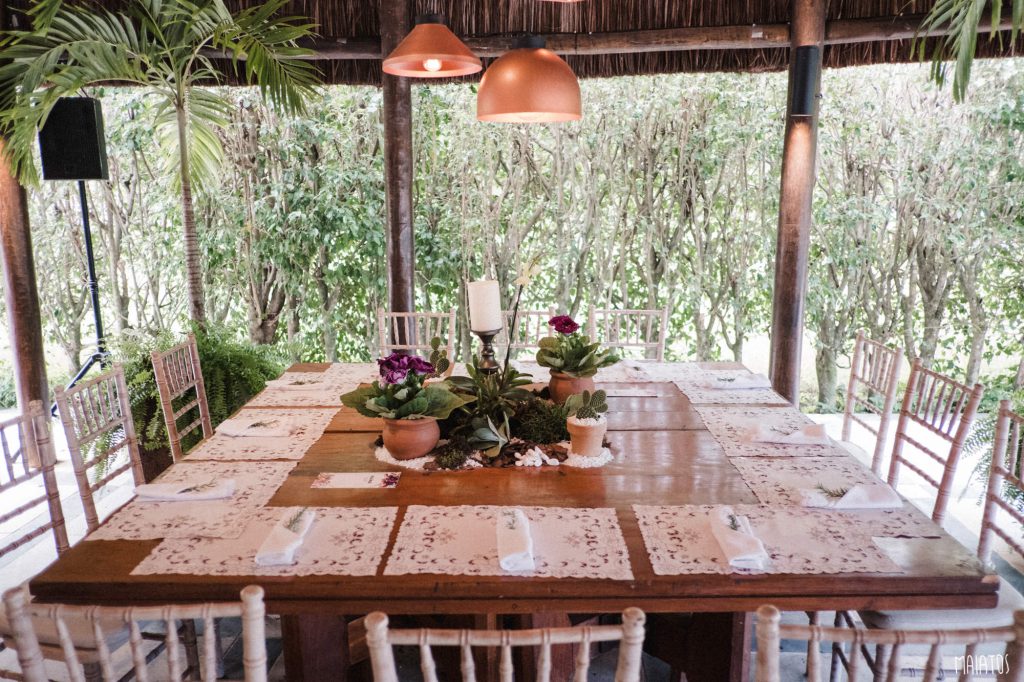 Em primeiro lugar, o dia estava abençoado por Deus. Lindo, fresco, sem nem sinal de chuva para não dar mini infarto em ninguém. Escolhemos um posicionamento fora do padrão que é feito no Lajedo e o resultado foi incrível! Um visual cheio de natureza do jeito que a gente ama. Com a trilha sonora do Beach n Bossa os convidados foram recepcionados e o encantamento começou!